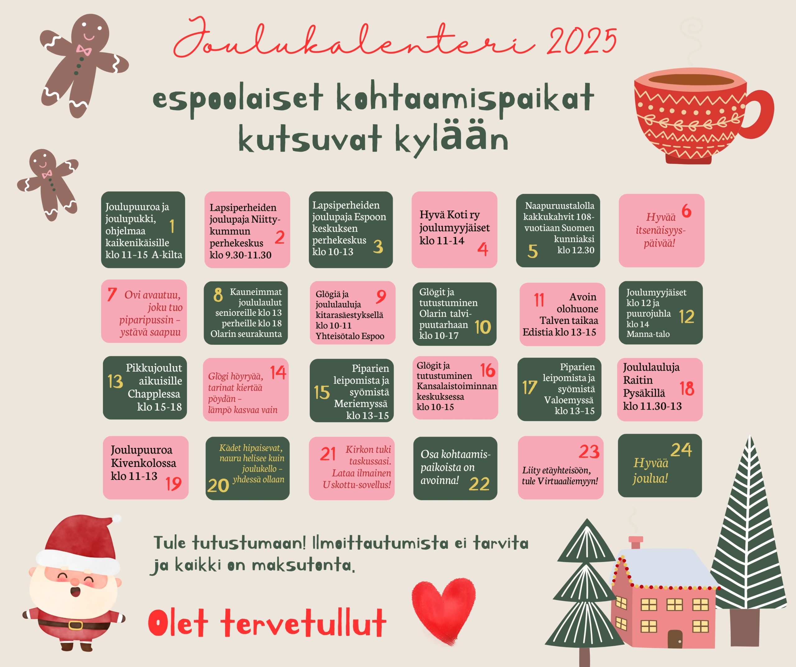 Tervetuloa seuraamaan Espoon alueen kohtaamispaikkojen joulukalenteria!